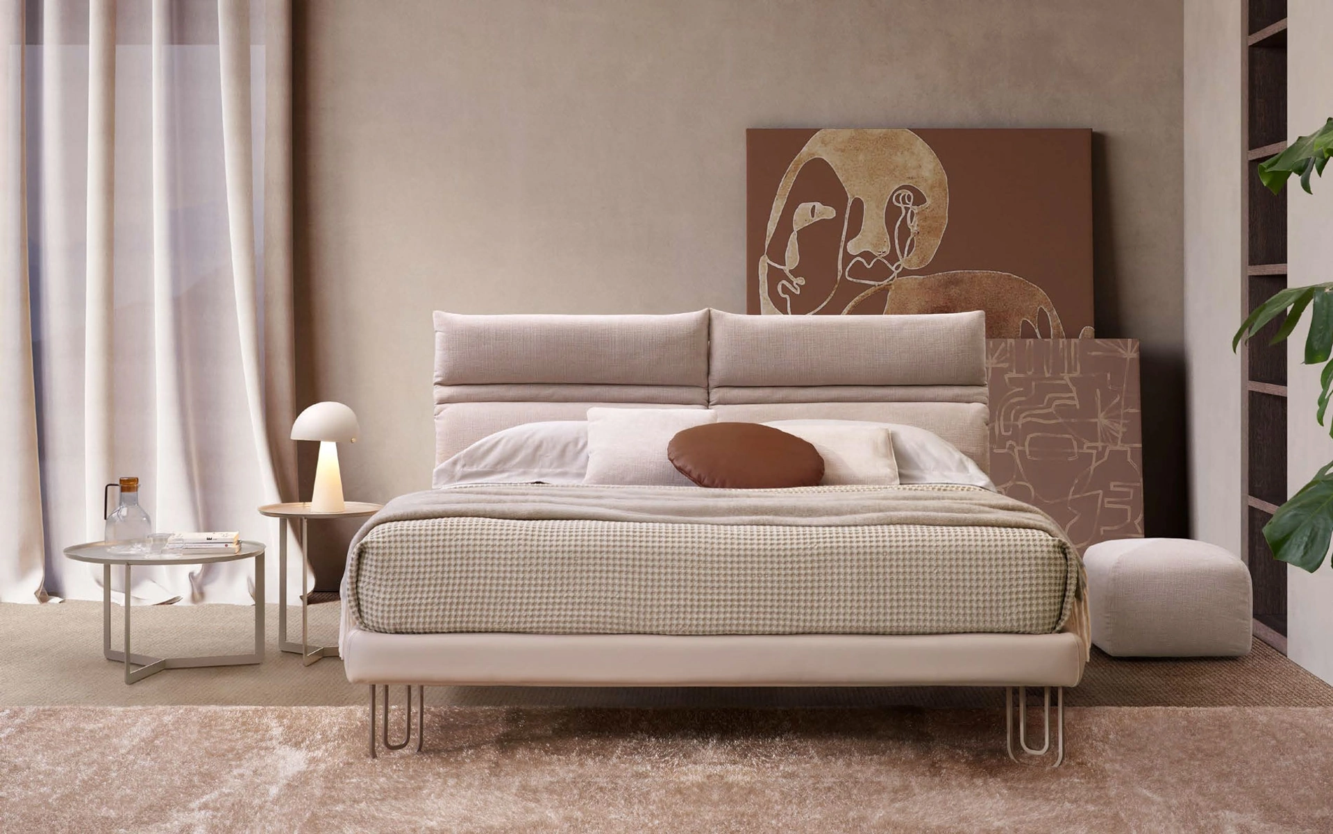 Durante l'acquisto di un buon modello di letto, valuta attentamente le sue dimensioni, i materiali, la forma e il suo stile rispetto al resto dell'arredo. Scegli cromie e finiture e realizza il tuo progetto d’arredo nella zona notte, progettandola proprio come l'hai sempre sognata. I Letti matrimoniali imbottiti del marchio, specialista nella realizzazione di Arredamento Casa per la zona notte, vengono progettati per essere abbinati a mobili e oggetti accessori di ogni tipo, come armadi e comodini, abat jour e piantane. Se desideri una soluzione in tessuto, il modello presente in foto è caratterizzato da materiali pregiati e forme decise, che invitano a passare un sonno sereno e rigenerante.