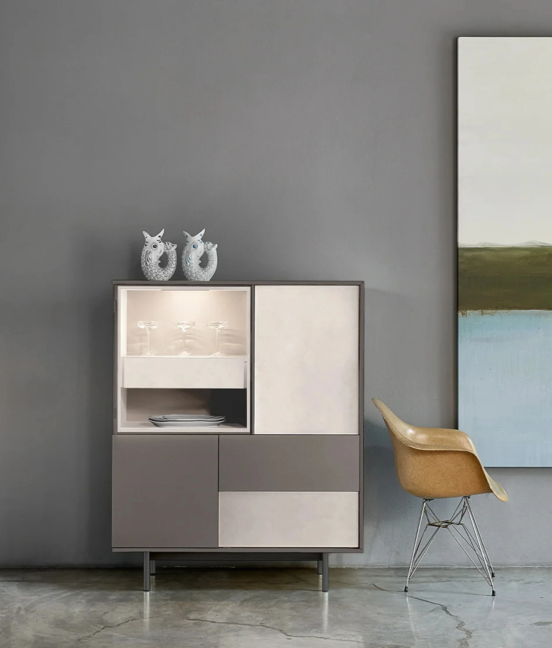 Unmobile soggiorno del genere valorizza in modo strategico i tuoi locali arricchendone l'estetica: contattaci e scopri come dare vita a un'atmosfera di grande personalità con mobili ed elementi accessori per il living. Scopri la nostra linea di Madie in laccato opaco del noto e conosciuto brand Sangiacomo, come il modello in foto, e potrai ricreare un living operativo e pratico. Personalità accattivante e un design unico conquisteranno anche te: la Madia Scrigno 02 di Sangiacomo è una delle soluzioni più originali sul mercato. Il brand produttore progetta Arredamento Casa di pregio: ti attendiamo in negozio per farti vedere dal vivo le composizioni più originali.