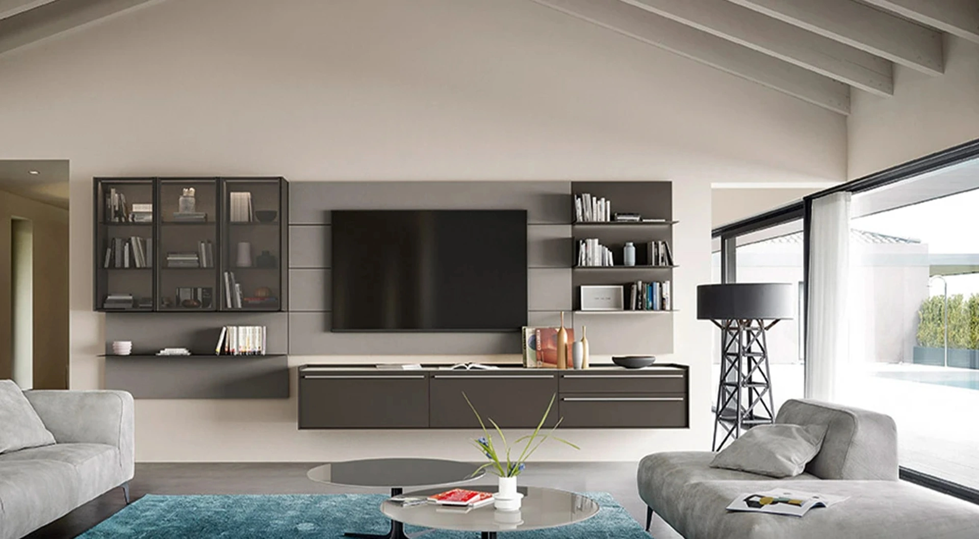 Questa soluzione costituisce tutta l'eccellenza che il brand garantisce grazie a pluriennale competenza e grande passione nel campo dell'arredo e del design. Anche in un living abbastanza piccolo, questo tipo di arredo riesce a ottimizzare gli spazi ottimizzando ogni angolo e garantendo grandi doti di componibilità tipica delle soluzioni moderne. Un po’ librerie, un po’ mobili contenitori ed espositori: le Pareti Attrezzate sono ideali per arredare uno spazio dinamico e operativo. La Parete Attrezzata Cabaret One 02 di Sangiacomo in foto, con finitura in laccato opaco, risolve le più personali esigenze abitative di stile e spazio senza rinunciare alla ricerca stilistica.