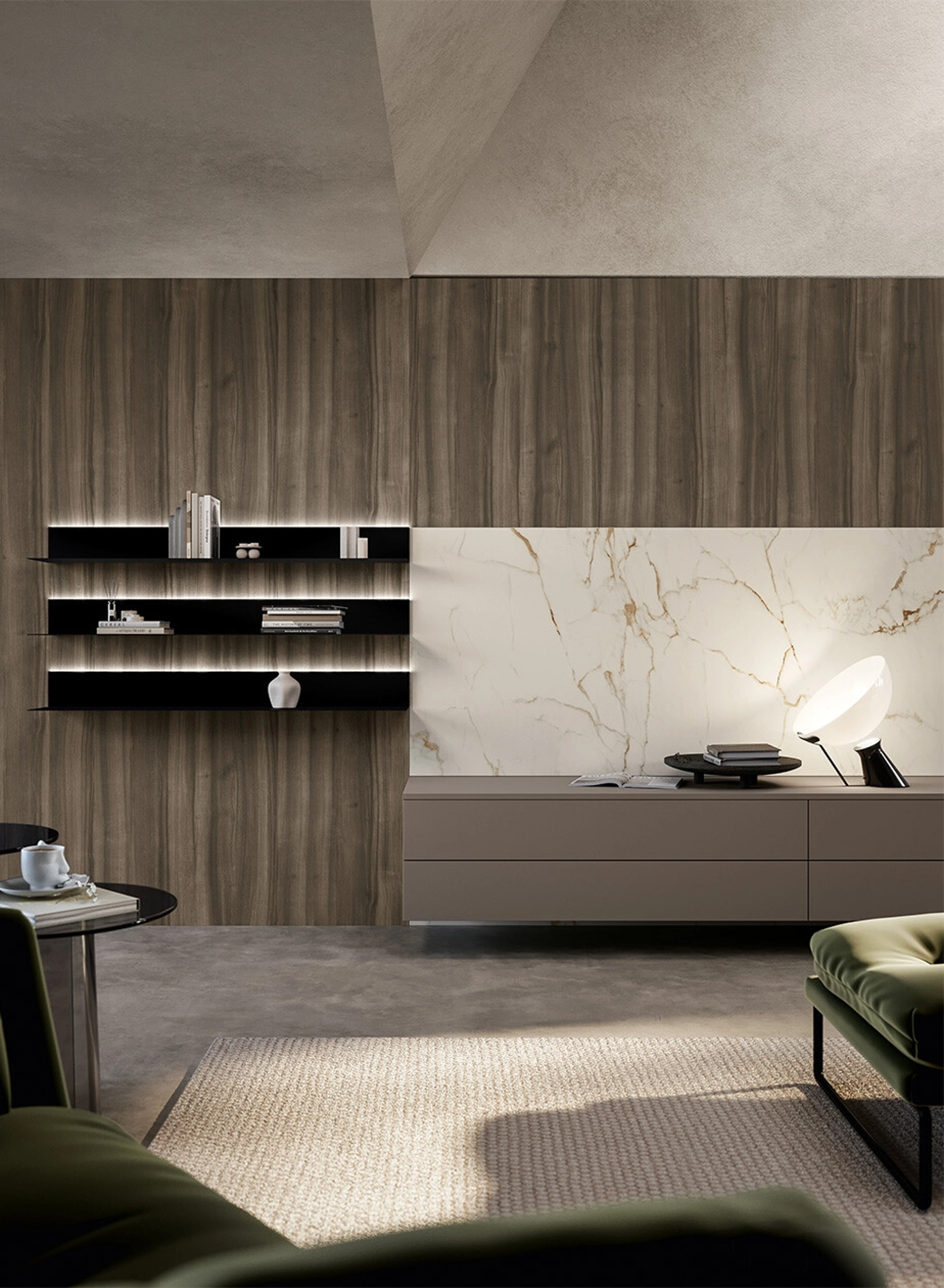 Questa parete attrezzata è una delle soluzioni del brand e ti consentirà di allestire il soggiorno seguendo le più personali esigenze abitative. Le Pareti Attrezzate hanno acquisito un posto importante nella zona giorno delle nostre case: sono mobili plurifunzionali e salvaspazio sempre realizzabili su misura per te. Attraverso un gioco dinamico di accostamenti fra accessori a giorno o vani chiusi, le Pareti Attrezzate moderne arredano il soggiorno ottimizzando ogni spazio.
