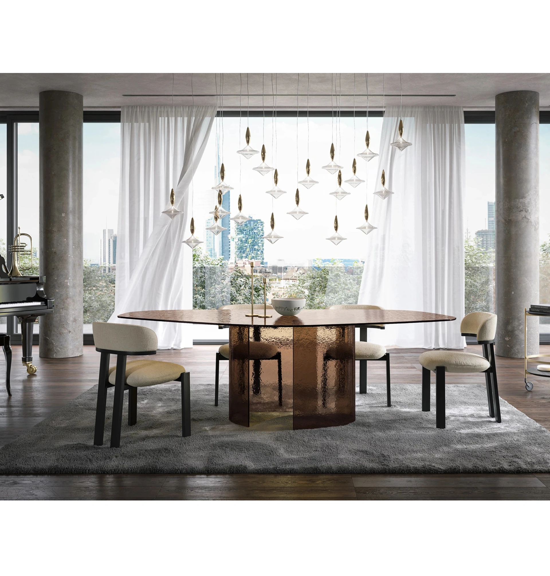 Tavolo in vetro Ablos di Tonin Casa: realizzato in materiali pregiati è connotato dalle forme decise del top e da un basamento elegante e sofisticato. Ideali per dare vita a degli accostamenti unici con sedute e complementi moderni, i Tavoli fissi del marchio sono soluzioni tra le più belle in commercio, ideali per il soggiorno e la zona cucina. Se vuoi un tavolo da pranzo di alto contenuto estetico, contattaci e ricevi informazioni e preventivi sul modello presente in foto. Il noto e rinomato marchio Tonin Casa, specialista nella realizzazione di arredi in vetro, ha scelto per la sua collezione una grande varietà di finiture, forme e tonalità.