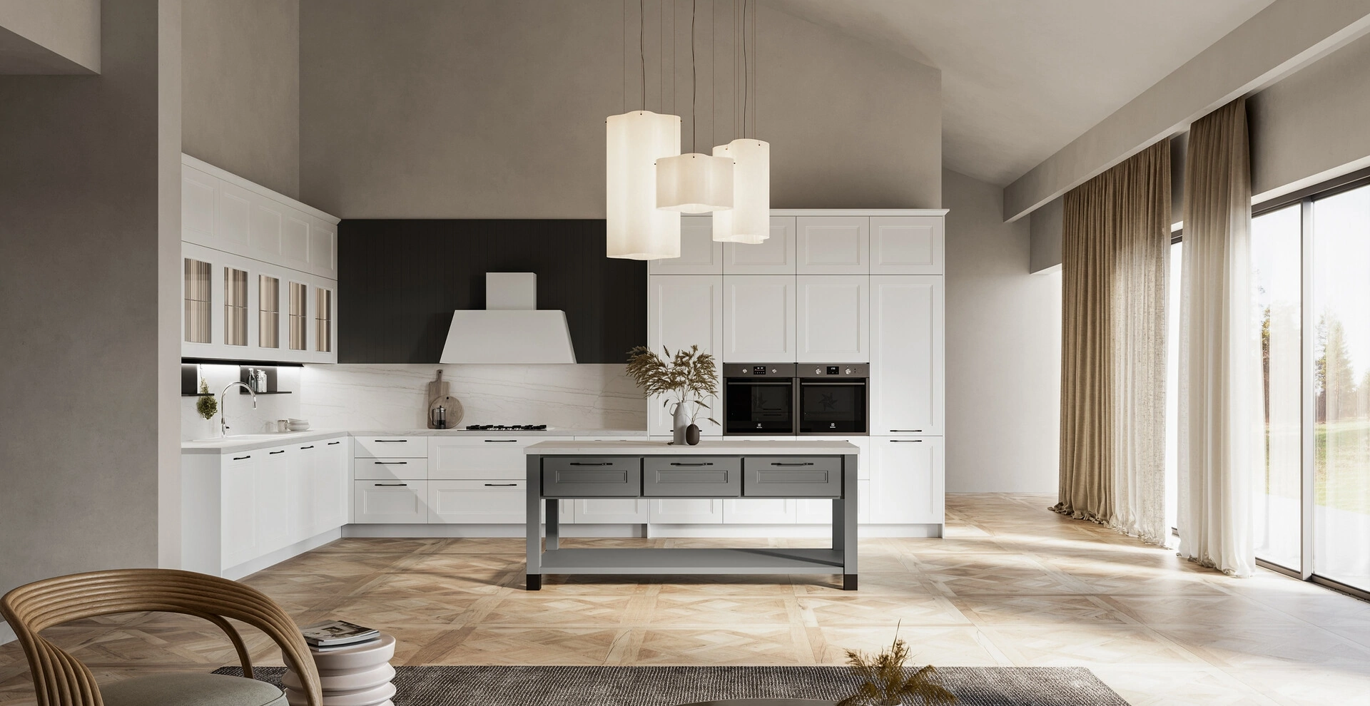 Le Cucine Moderne del brand Arredo3 hanno un effetto di generale armonia tra mood contemporaneo, innovazione tecnica, praticità e originalità. Se desideri ordinare una soluzione in laccato opaco tra le diverse proposte ad angolo, l'alta componibilità della Cucina Moderna angolare Meg 03 di Arredo3 ti darà modo di esprimere le tue esigenze d’arredo. Tra i molteplici modelli presenti nel catalogo Arredo3, la cucina nella fotografia rende lo spazio facilmente fruibile e danno la possibilità di godere degli ambienti domestici appieno.
